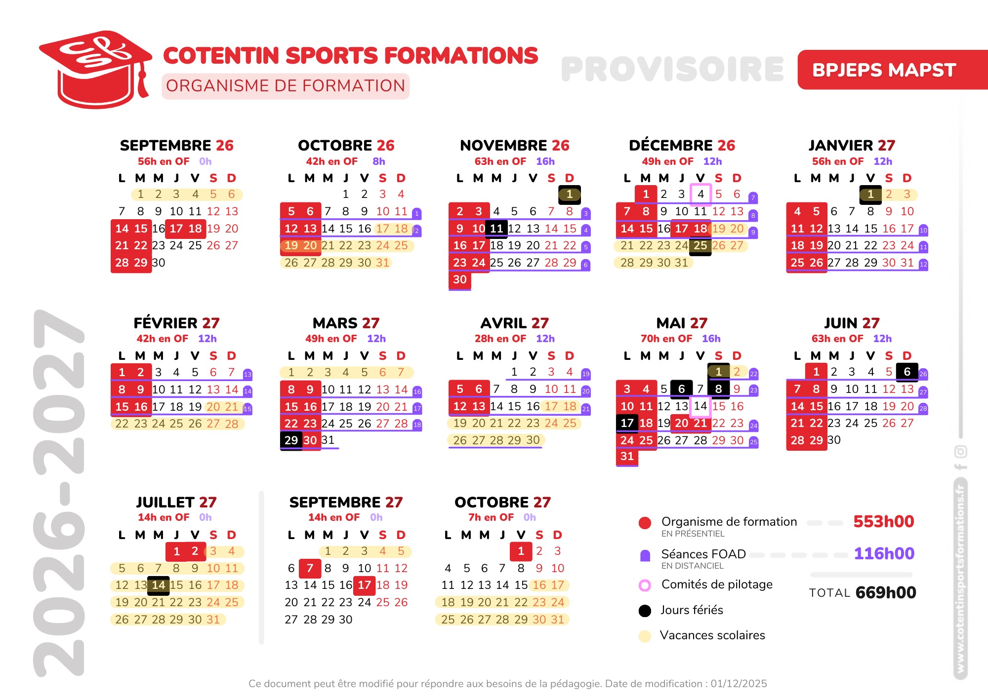 Si vous réalisez un BPJEPS MAPST, vous aurez cours le lundi et mardi.